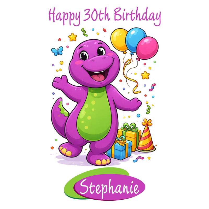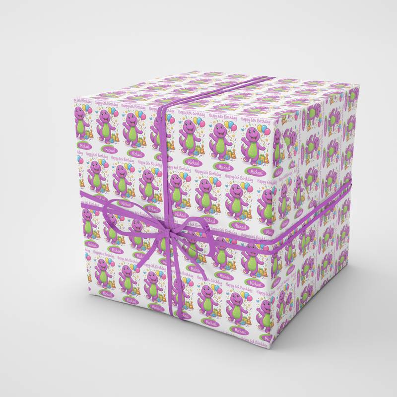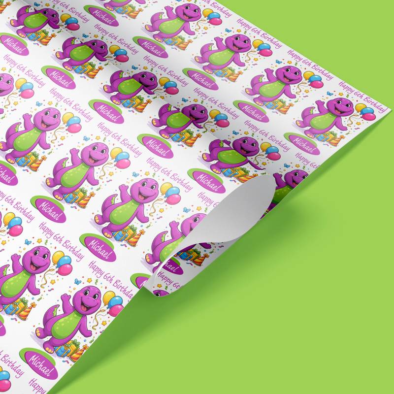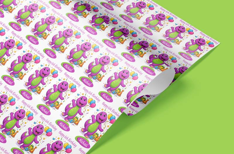 Personalised Barney The Dinosaur Wrapping Paper – Cute Cartoon Birthday Gift Wrap