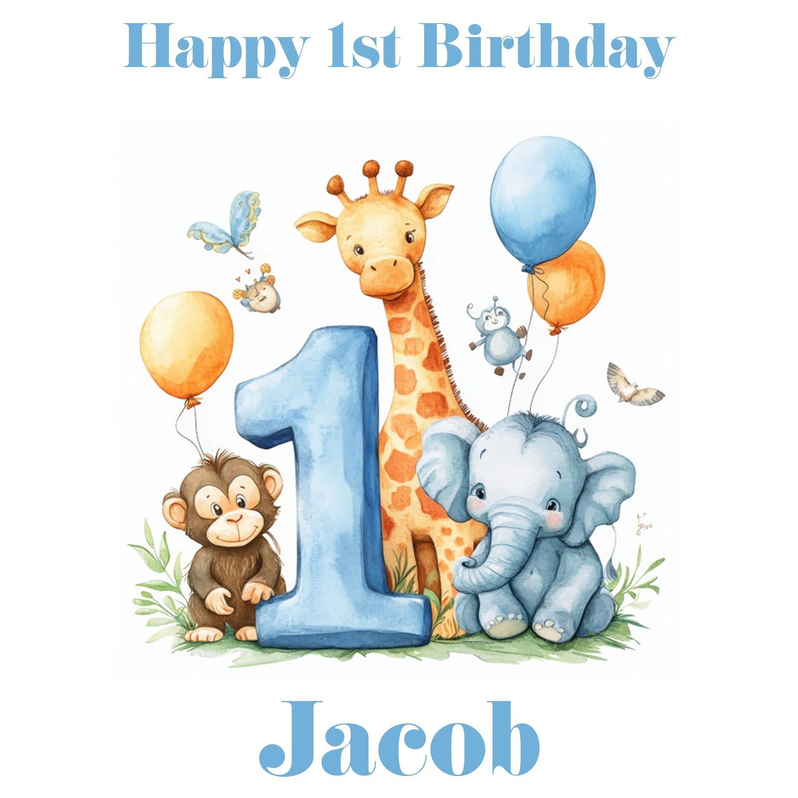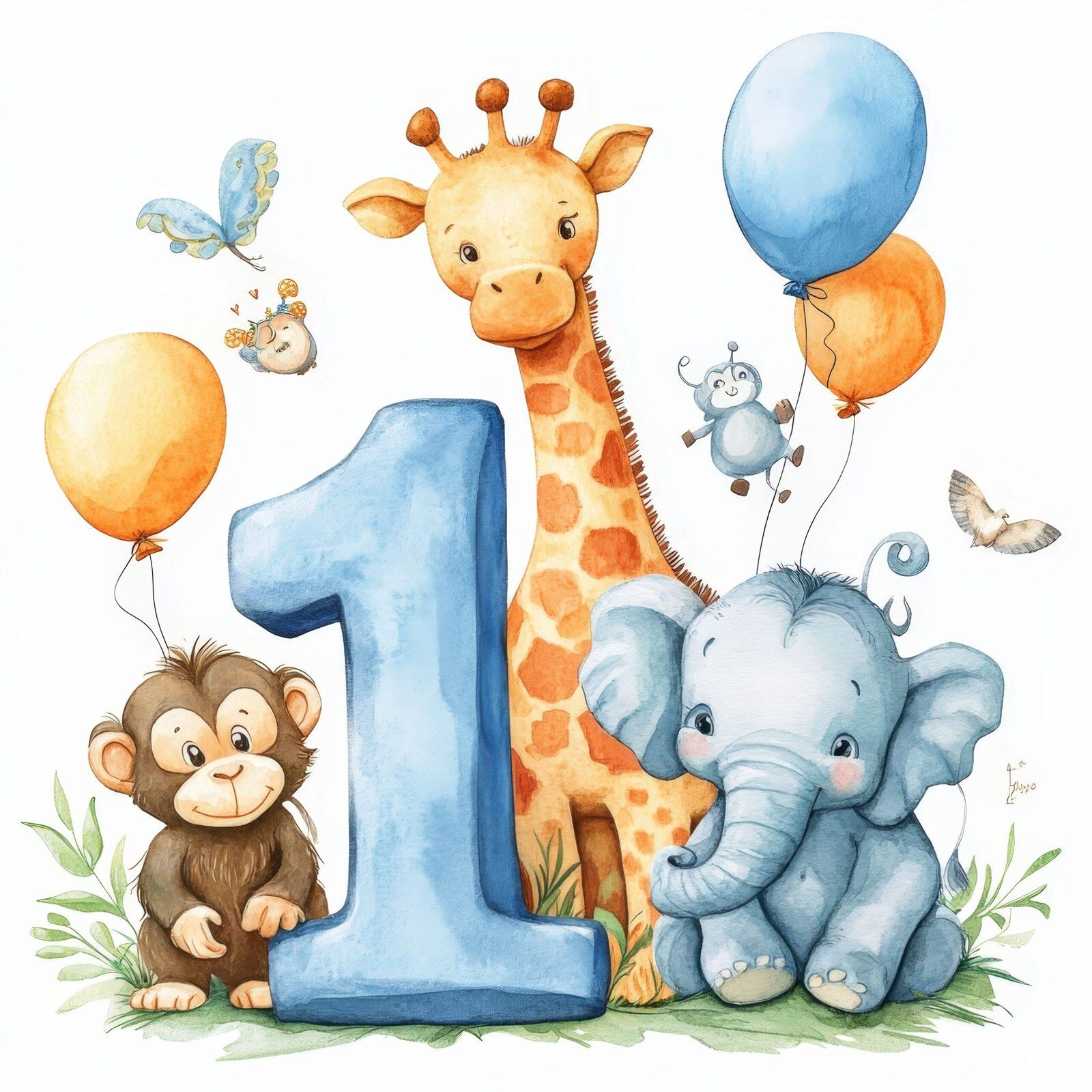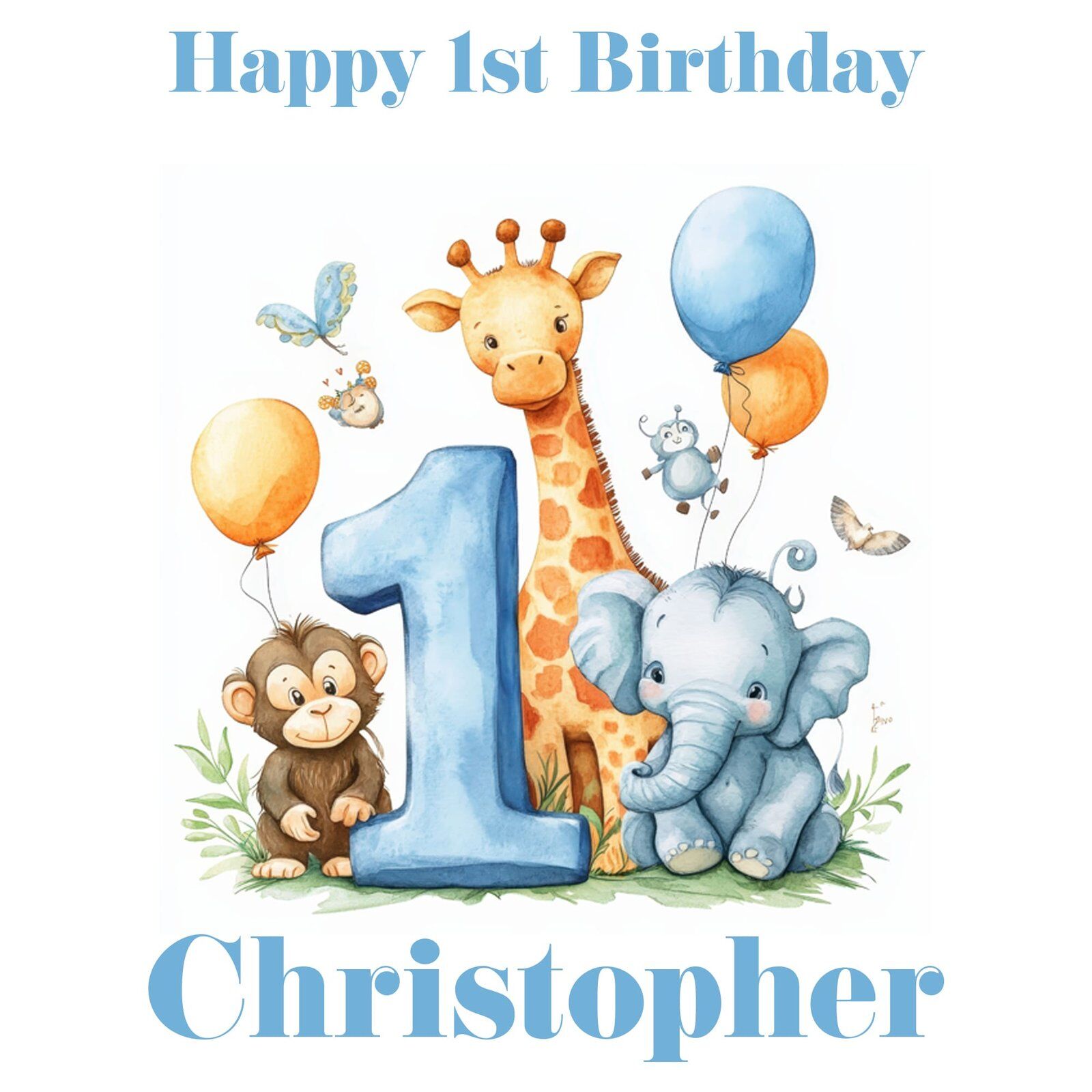 1st Birthday Blue Safari Animals Gift Wrap