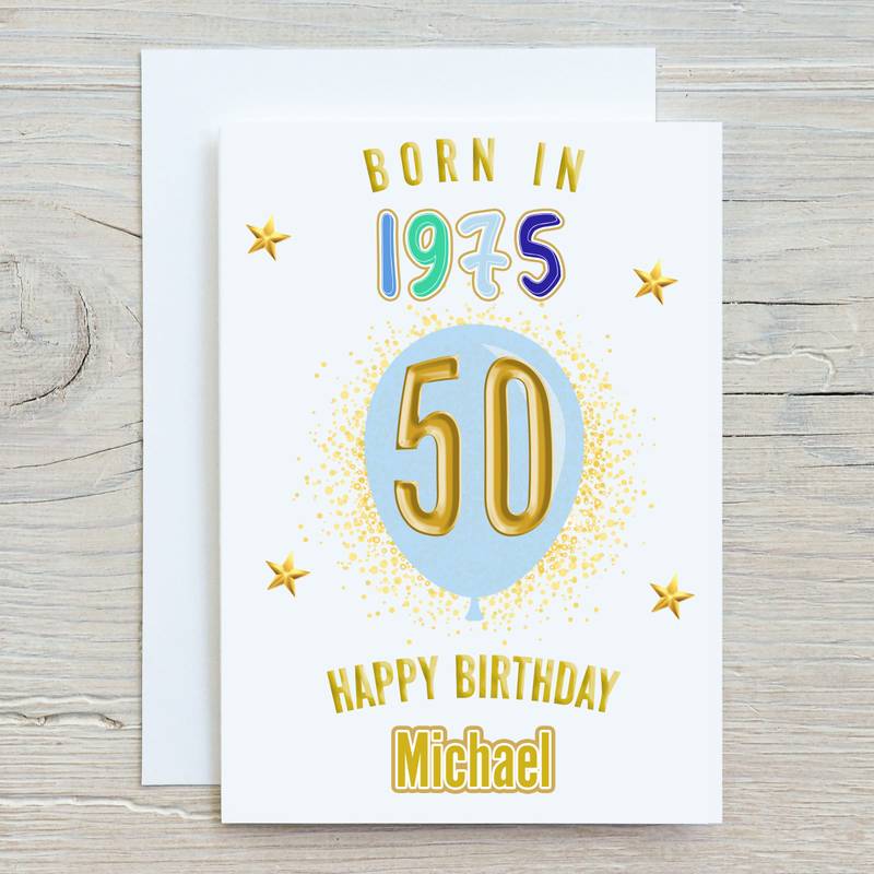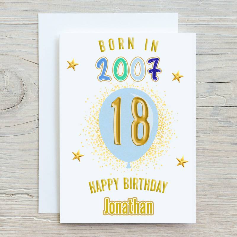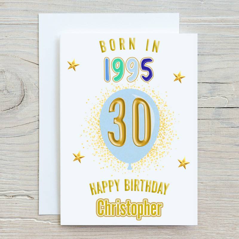 Born in Year Blue Balloon Card