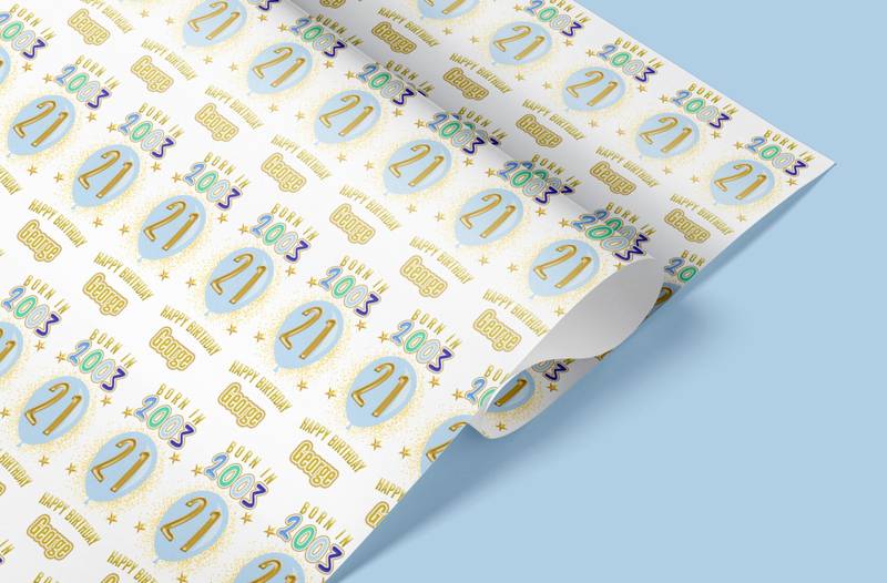 🎁 Personalised Blue Birthday Wrapping Paper – Born In [Year] with Name & Age