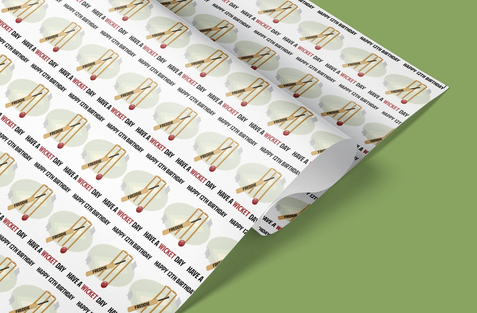 A perfect personalised “Have a wicket day” Cricket gift wrap to put a smile on any cricket fans face, friend, partner, colleague etc