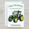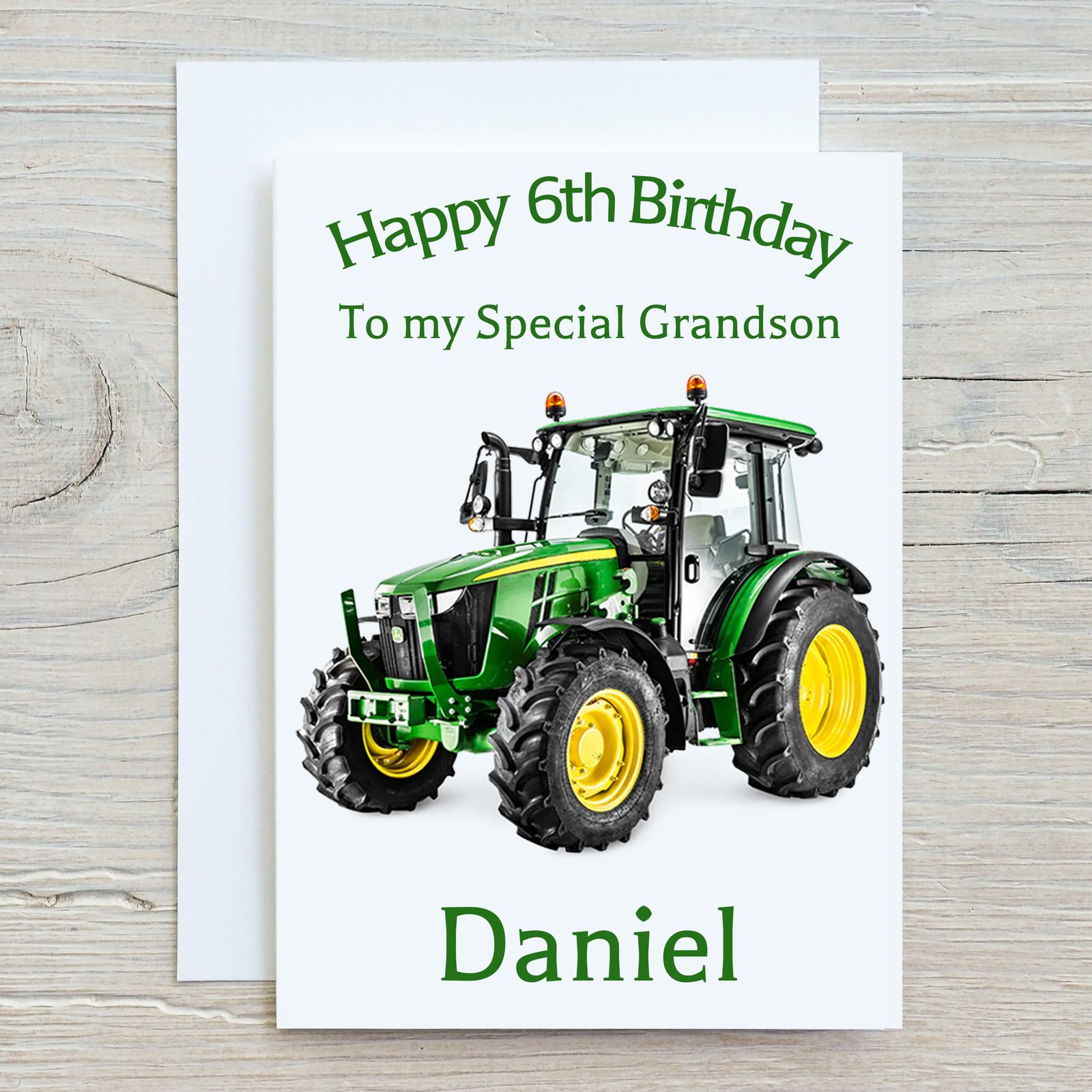 Add a touch of class with this Green Tractor card with relationship, names and age of birthday for that special tractor fan.