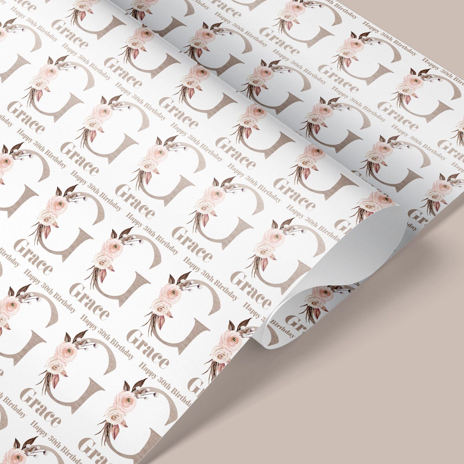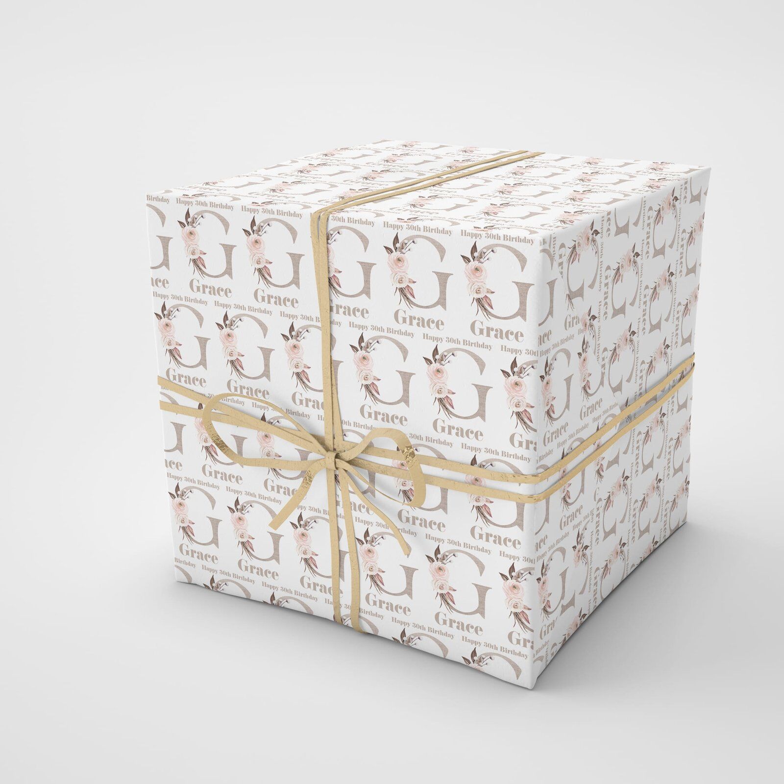 A lovely elegant personalised linen effect initial gift wrap, put a smile on their face, for Grandparents, Parents, friend, partner, colleague etc