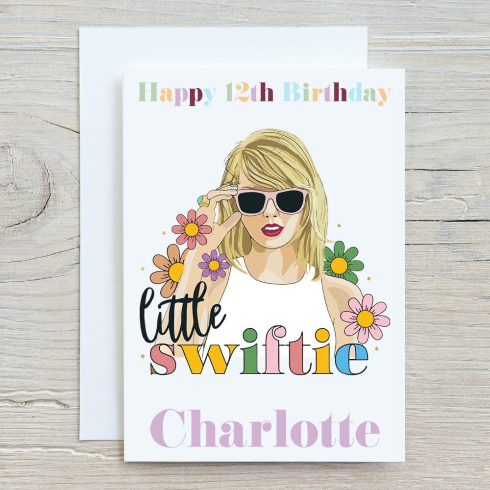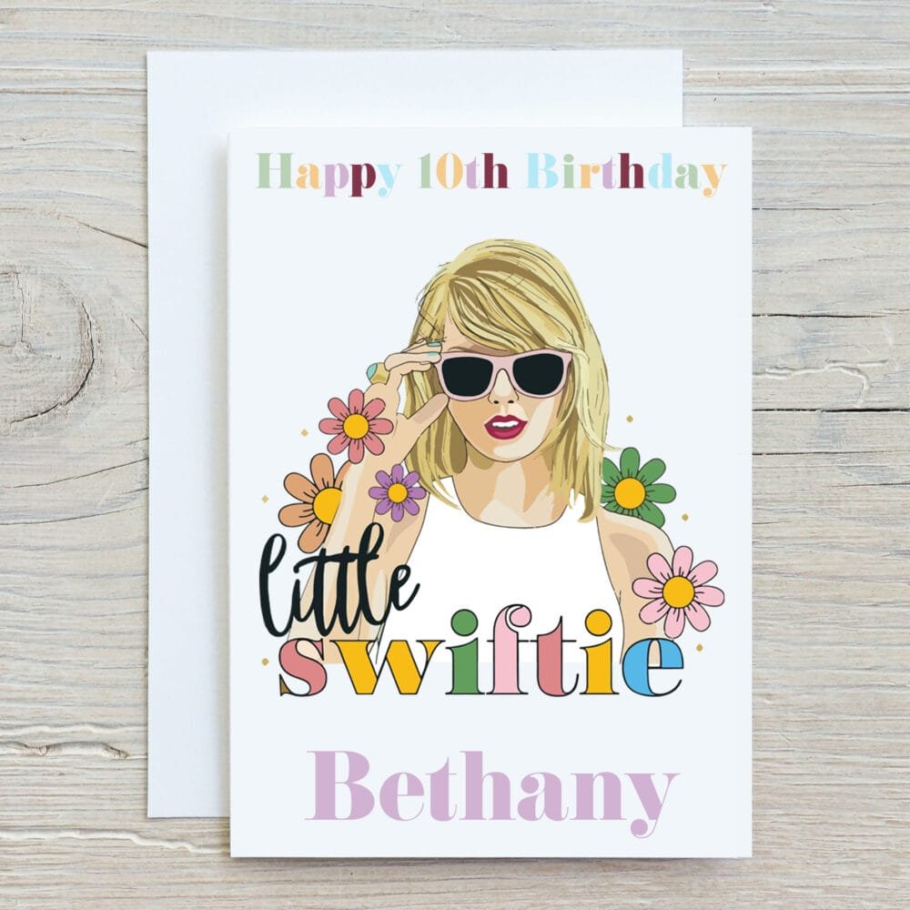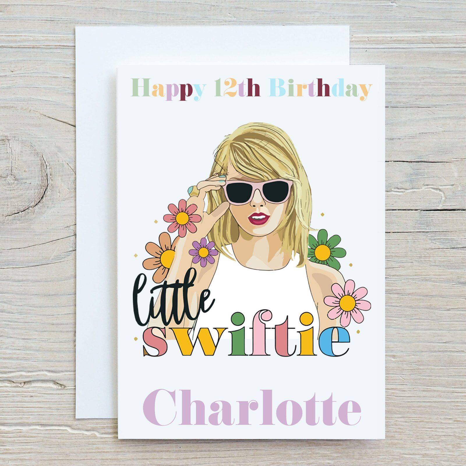 Add a touch of class with this colourful Little Swiftie Birthday card with a name and age for that special person.