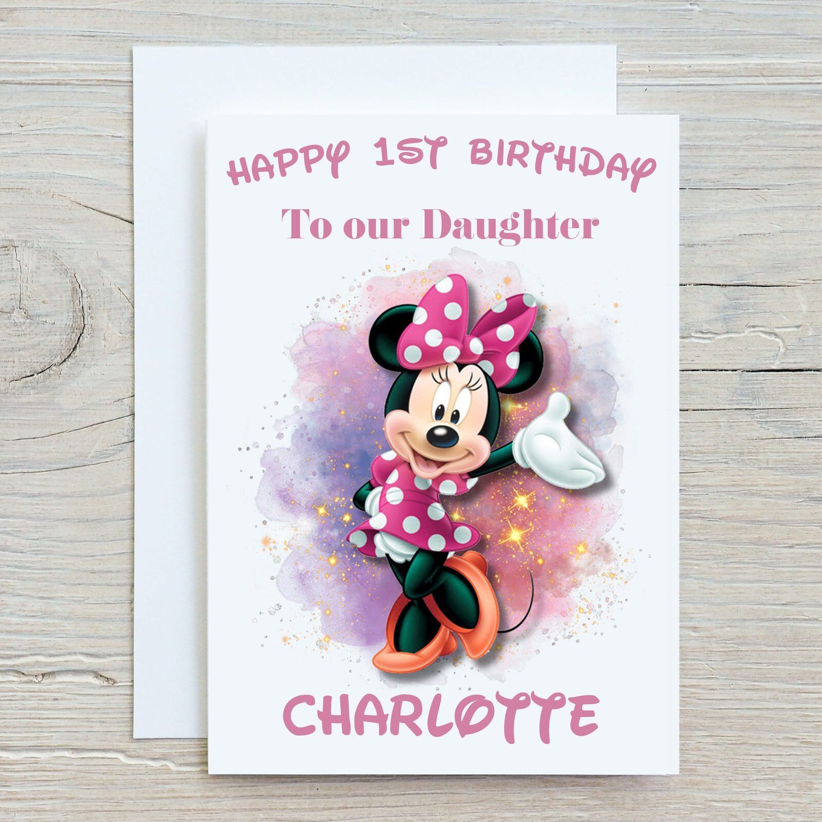 Personally this Minnie Mouse with an age of birthday, relationship wording and a chosen name, just perfect for adding that little touch of personalisation and making it extra special.