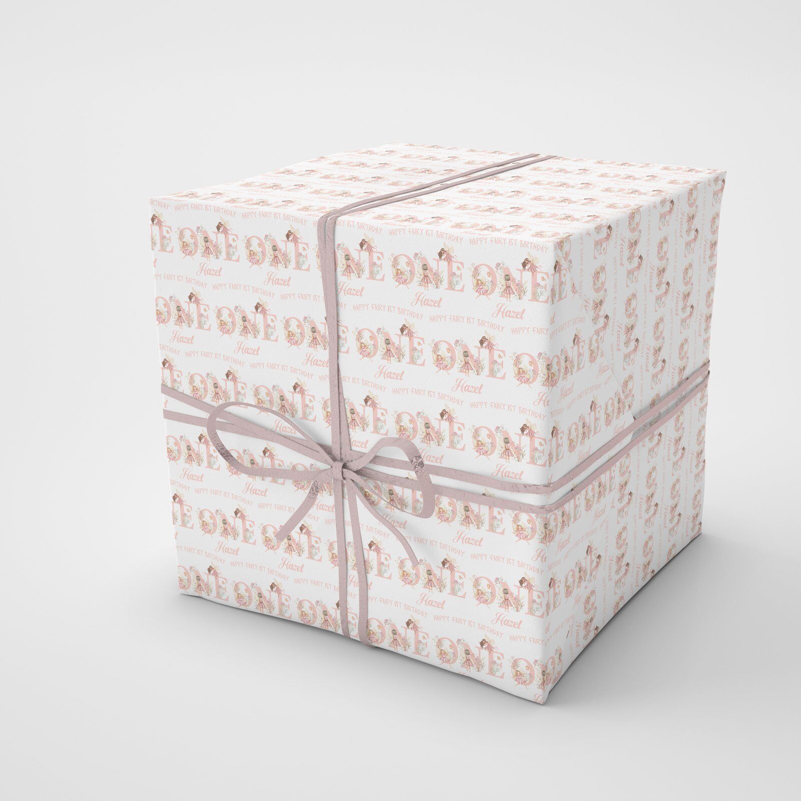 Personalised Fairy 1st Birthday Wrapping Paper – Custom Name Pink Fairy Theme