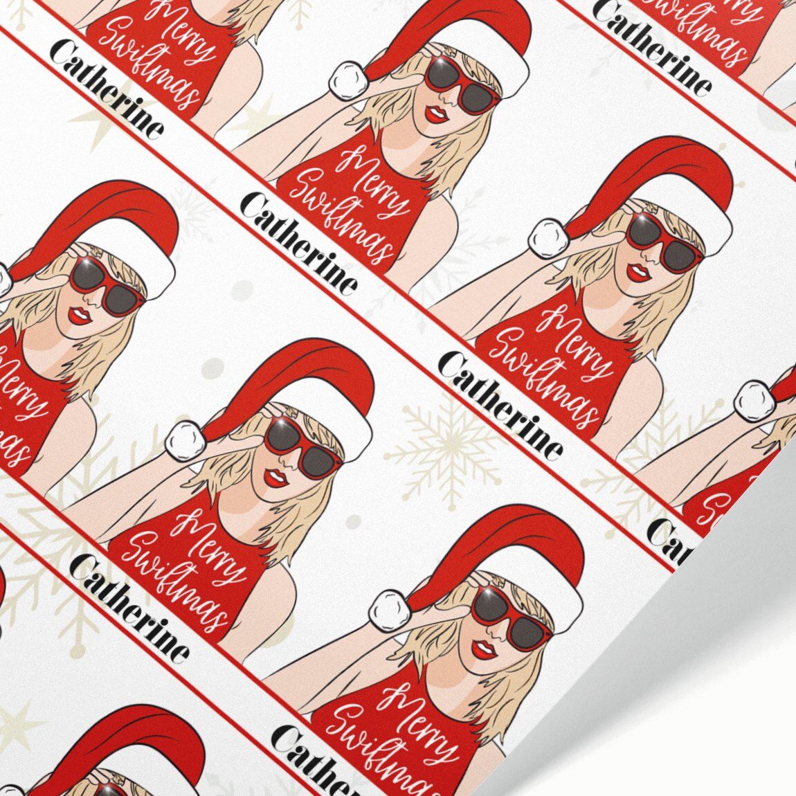 Celebrate in style this year and give your Christmas gifts a fashionable, festive upgrade with our Personalised Merry Swiftmas Wrapping Paper – made just for you.