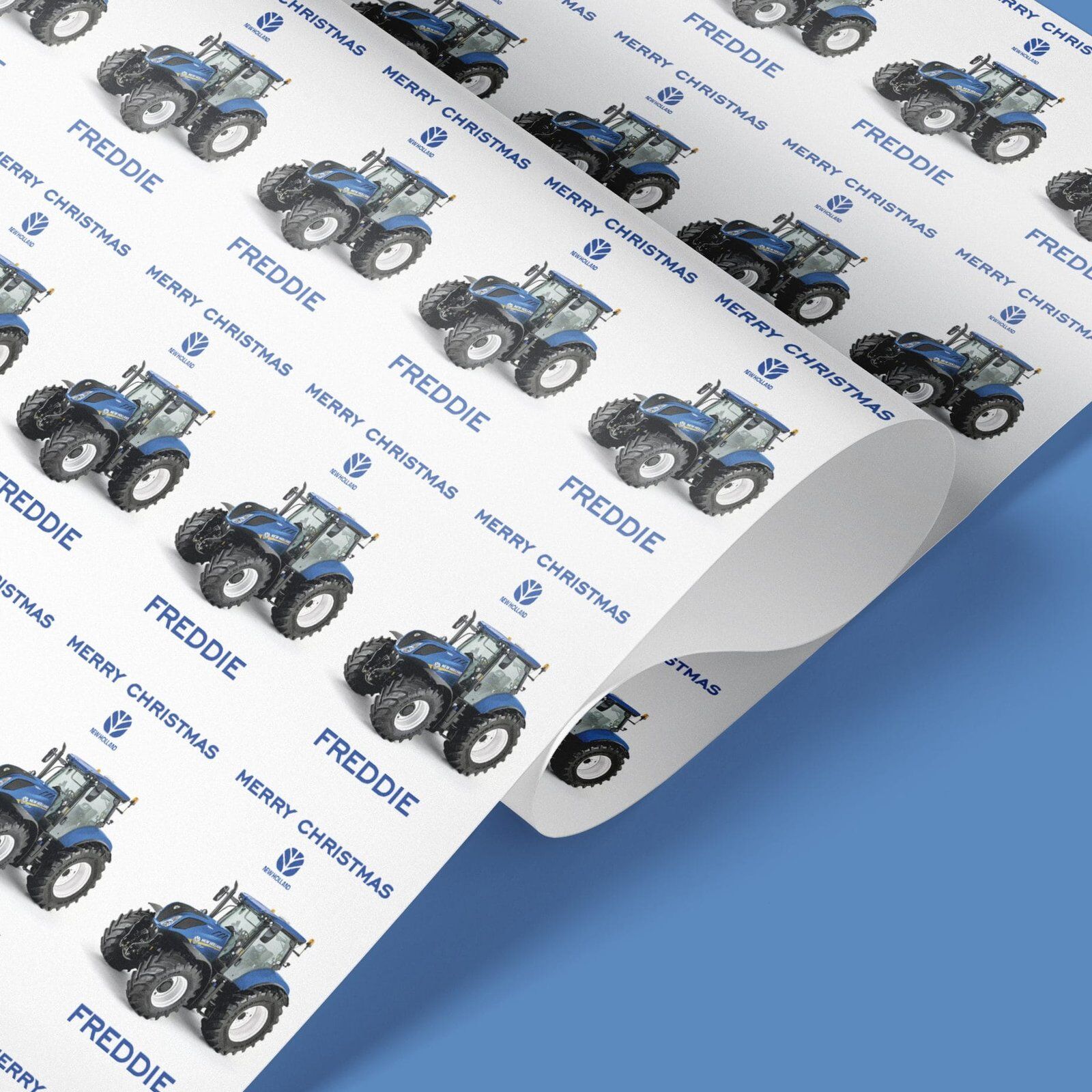 New Holland Tractor gift wrap, Blue tractor