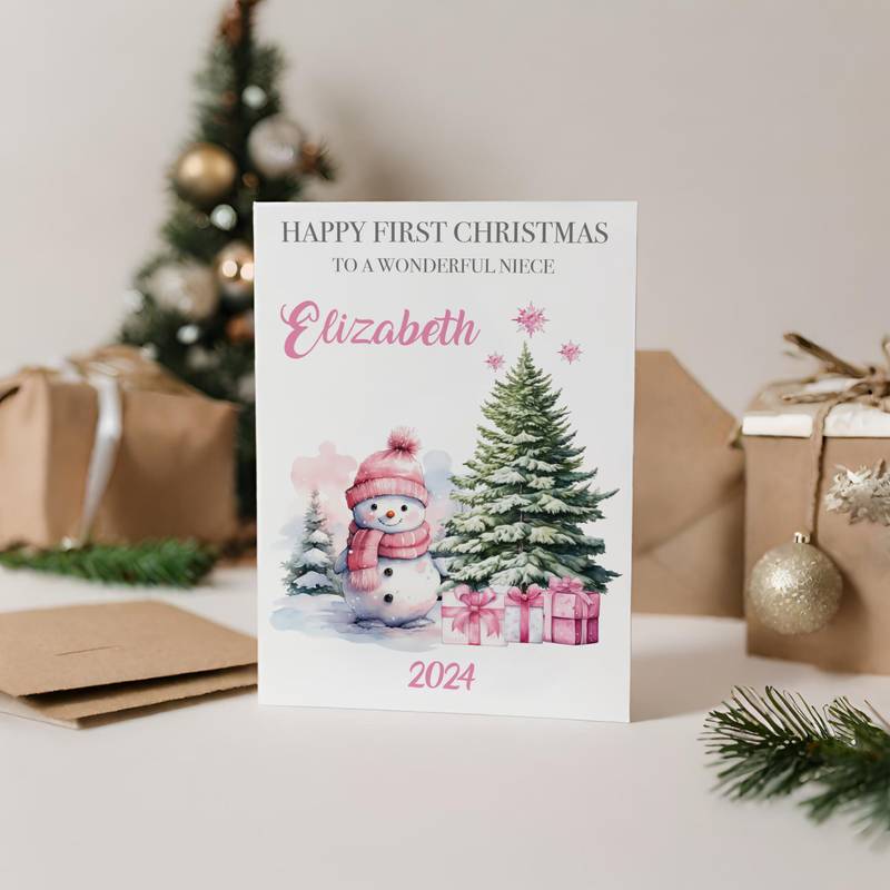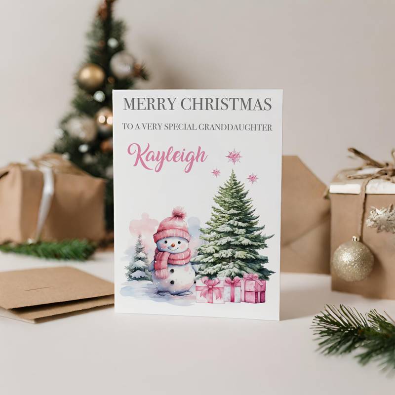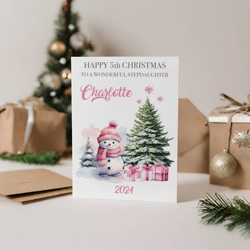 Personalised Pink Snowman Christmas Card – Custom Name & Relationship | Gift Wrap 4 U