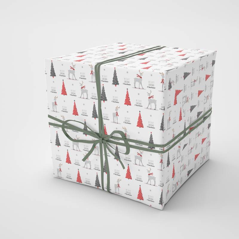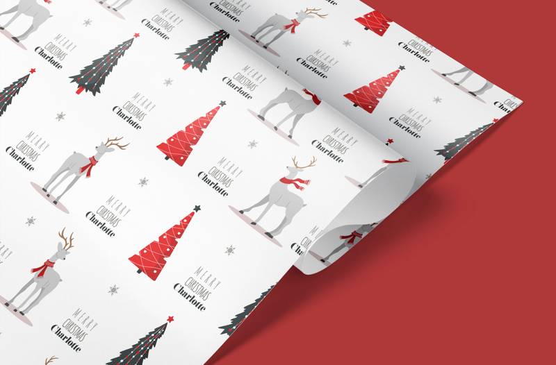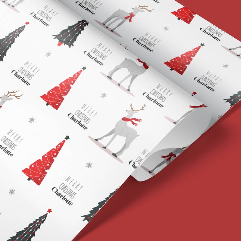 Personalised Reindeer & Christmas Tree Wrapping Paper