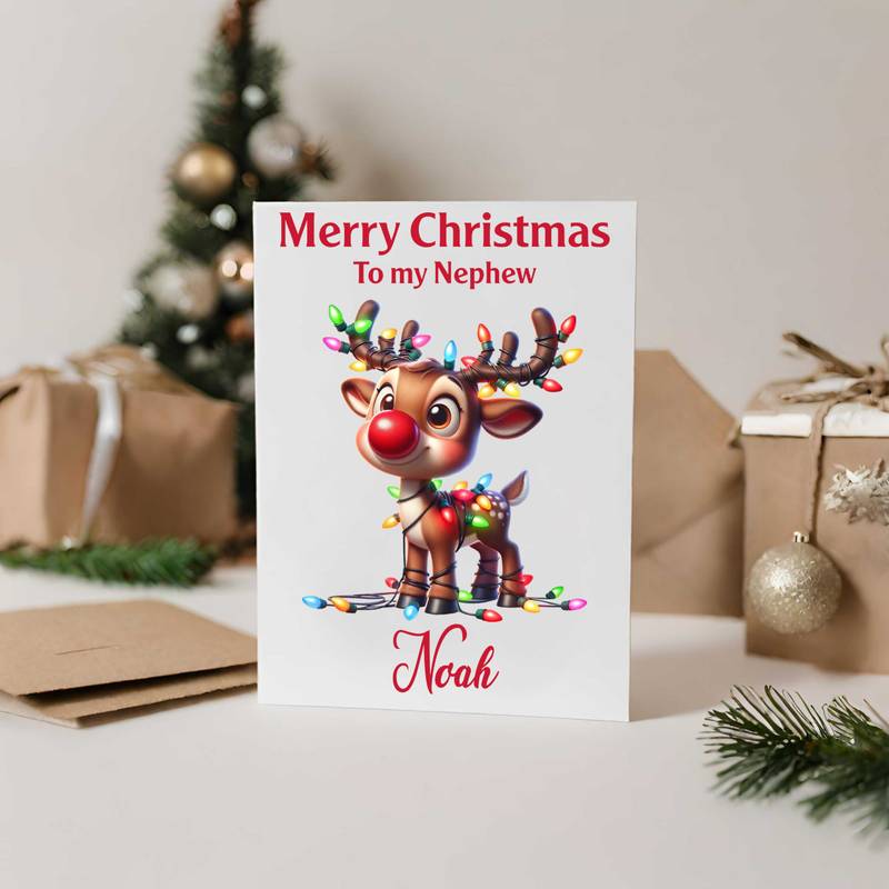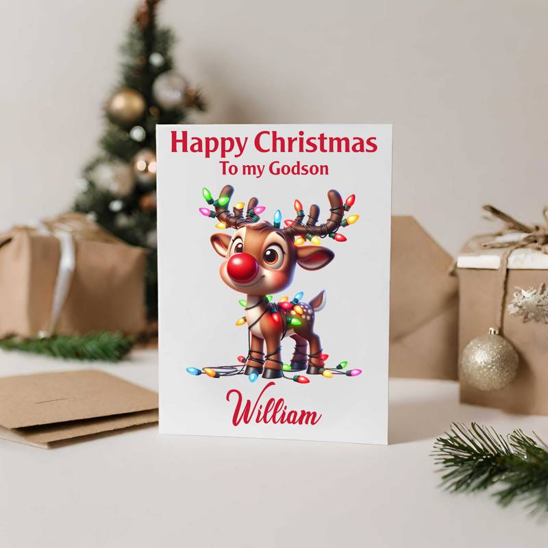 Personalised Rudolph the Reindeer Christmas Card | Custom Name Christmas Card