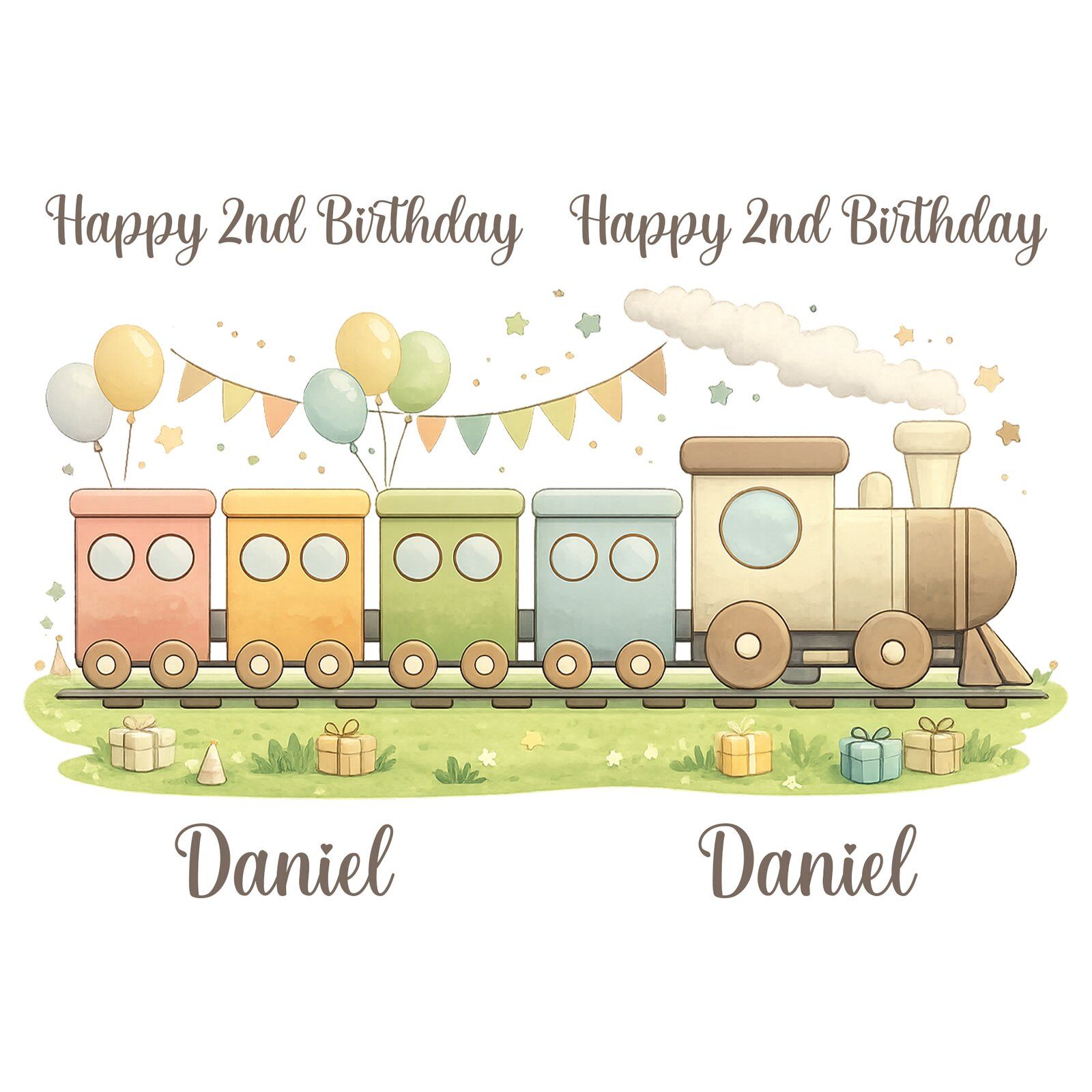 A charming personalised train-themed wrapping paper, customised with any name and age. Perfect for children’s birthdays, printed on premium paper and delivered rolled, not folded.