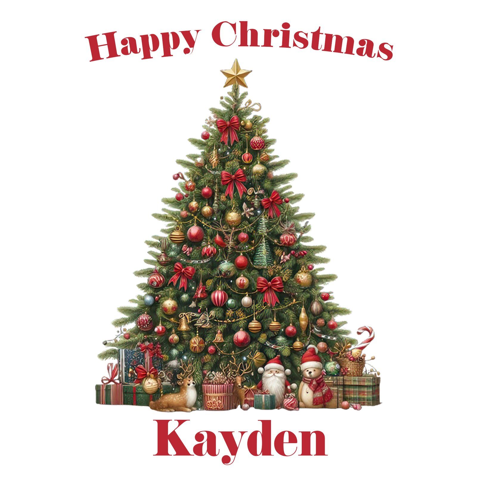 🎨 Design: Classic Christmas tree with gifts and festive décor.
