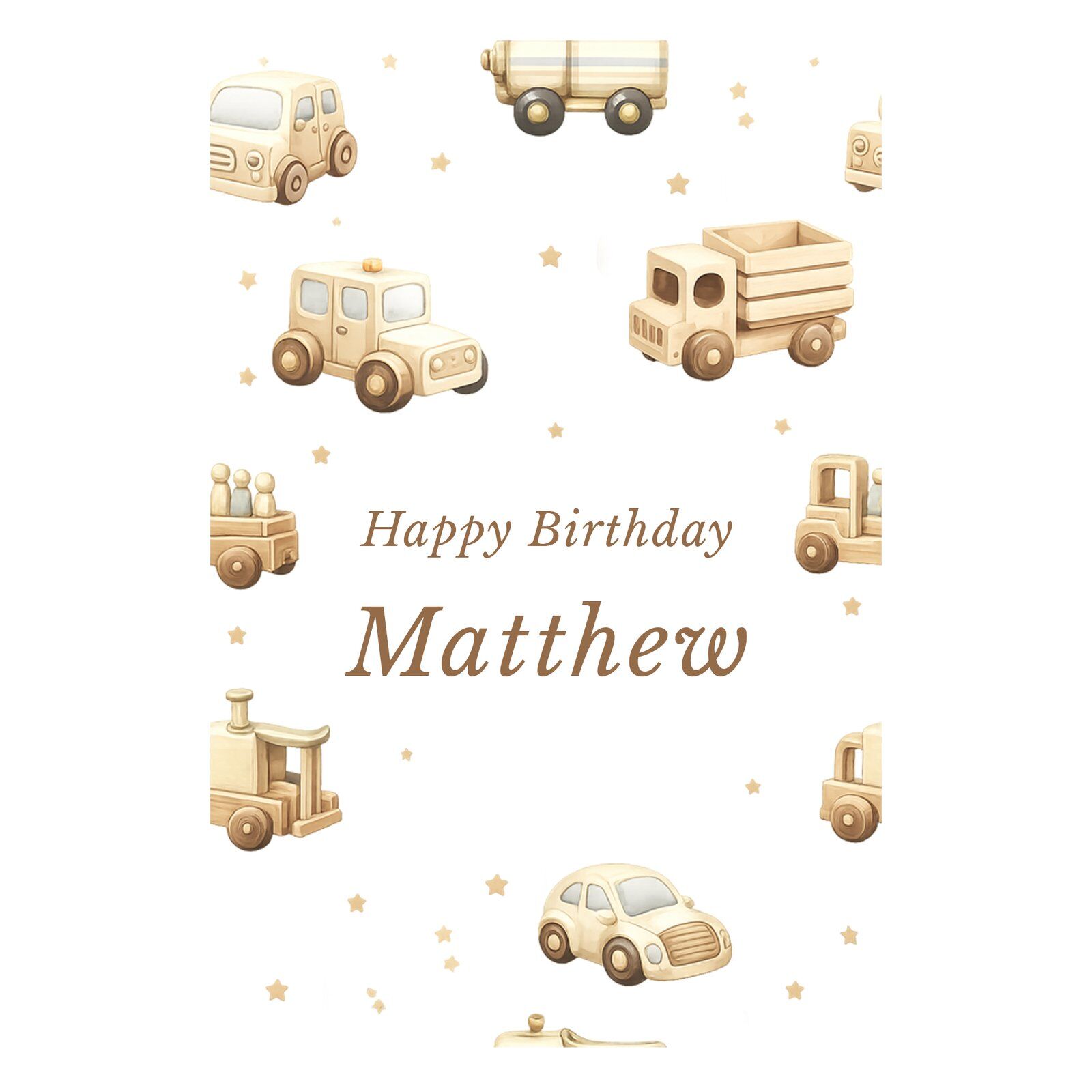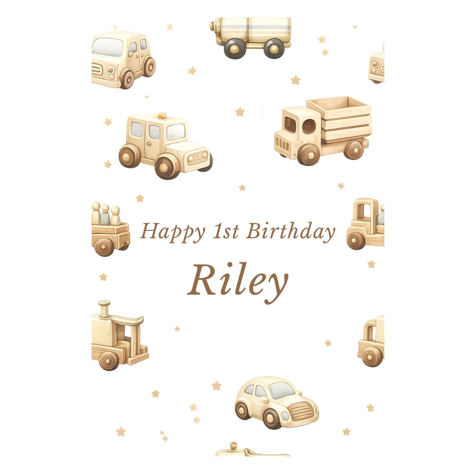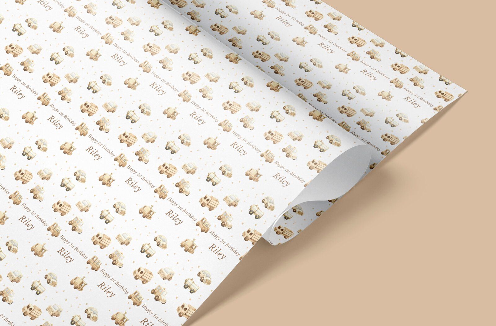 Beautiful personalised wooden toy cars wrapping paper, perfect for birthdays, baby milestones and toddlers. Customise with any name and age for a thoughtful finishing touch that makes every gift extra special.
