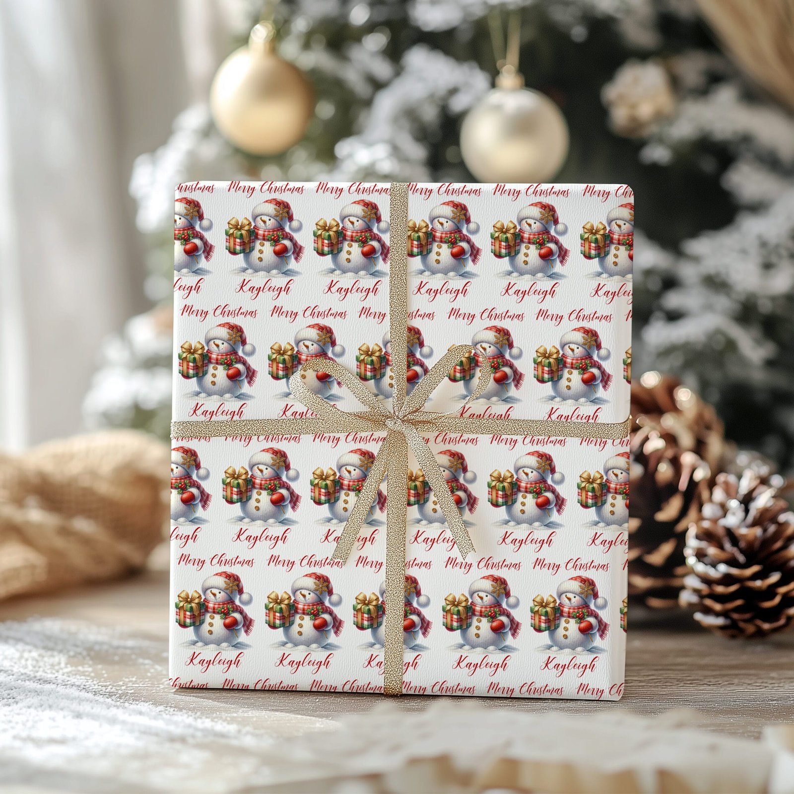 A perfect personalised red themed snowman gift wrap to put a smile on that loved ones face, friend, partner, colleague etc