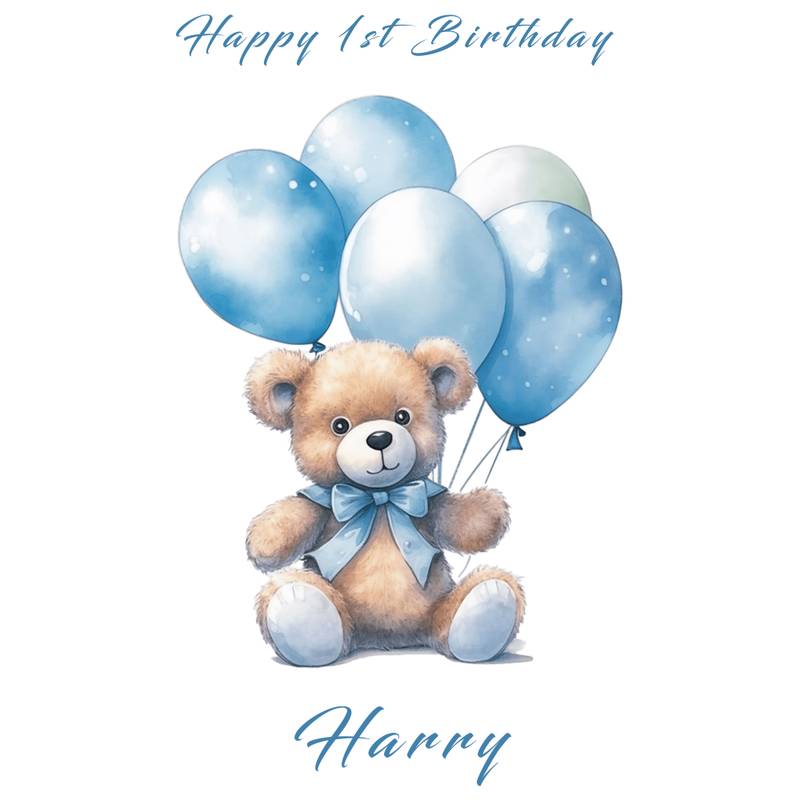 🧸 Cute & timeless design – A soft teddy bear with pastel blue balloons.