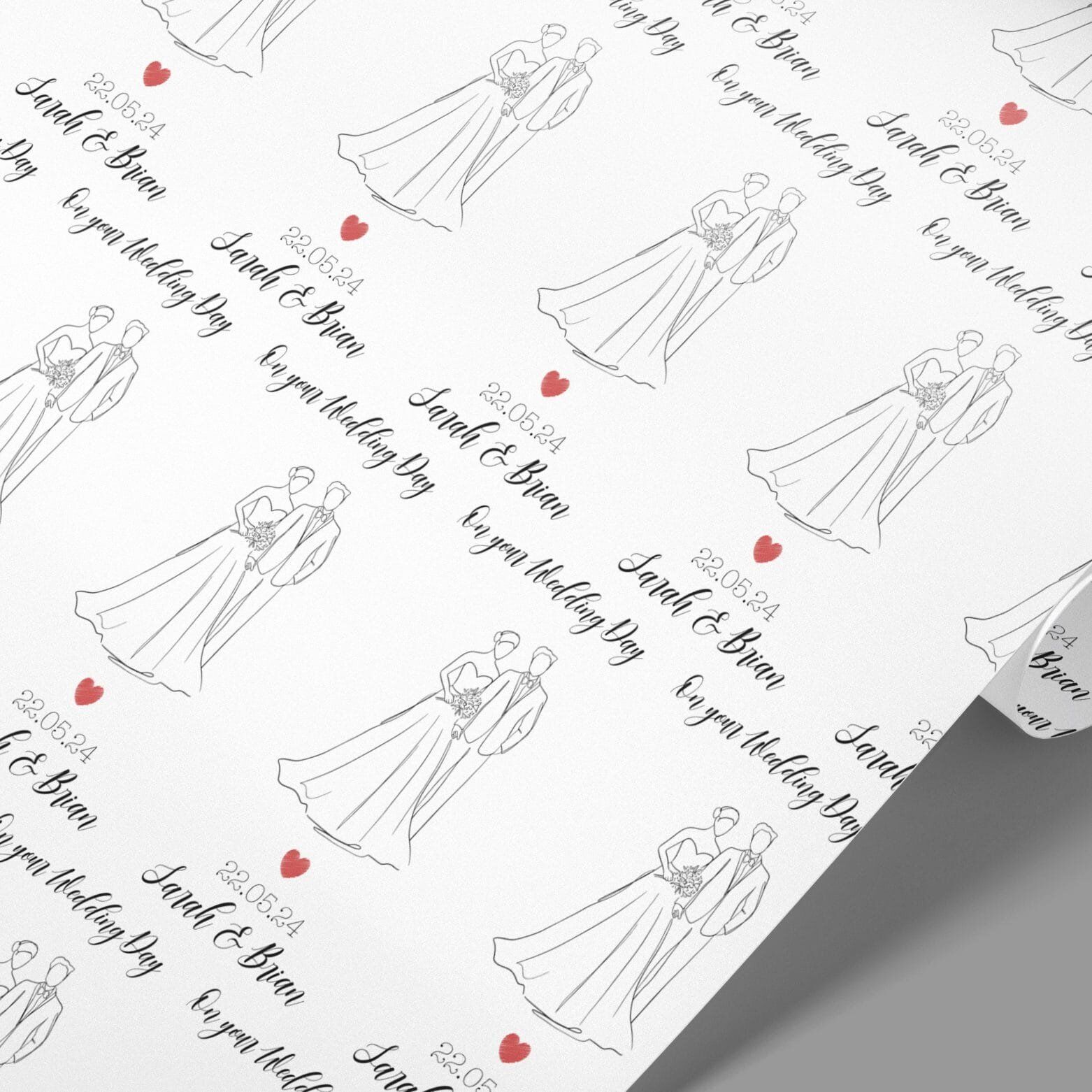 A perfect personalised wedding gift wrapping paper to put a smile on your loved ones faces, friends, partners, colleagues etc, an ideal wrapping paper for any wedding present.