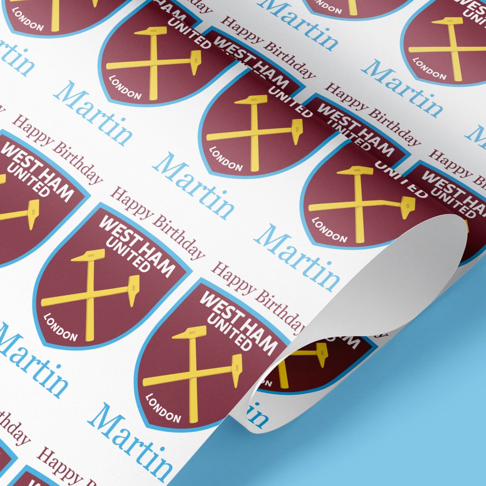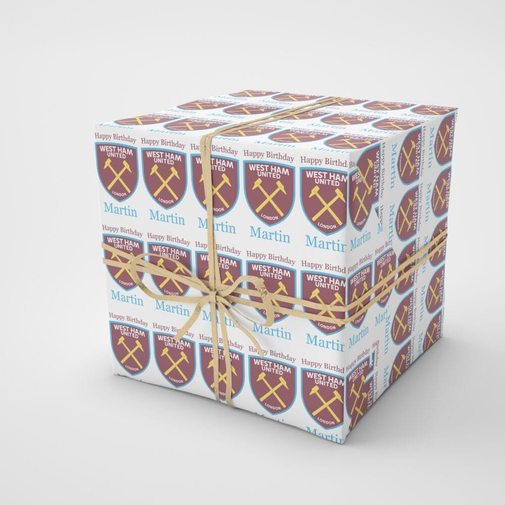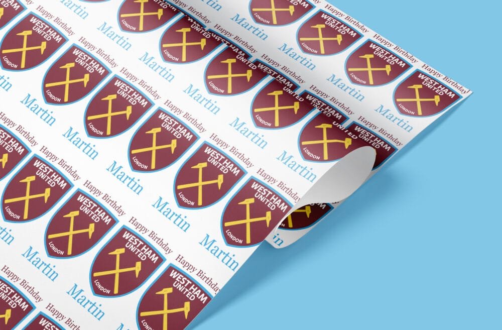 A perfect personalised West Ham gift wrap for that special Hammers fan, friend, partner, colleague etc